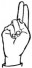 На ћирилици написано ПЕРИША ЈОЧАНИН састоји се из 13 слова [?]. Исписано ћириличном једноручном азбуком за глувонеме: